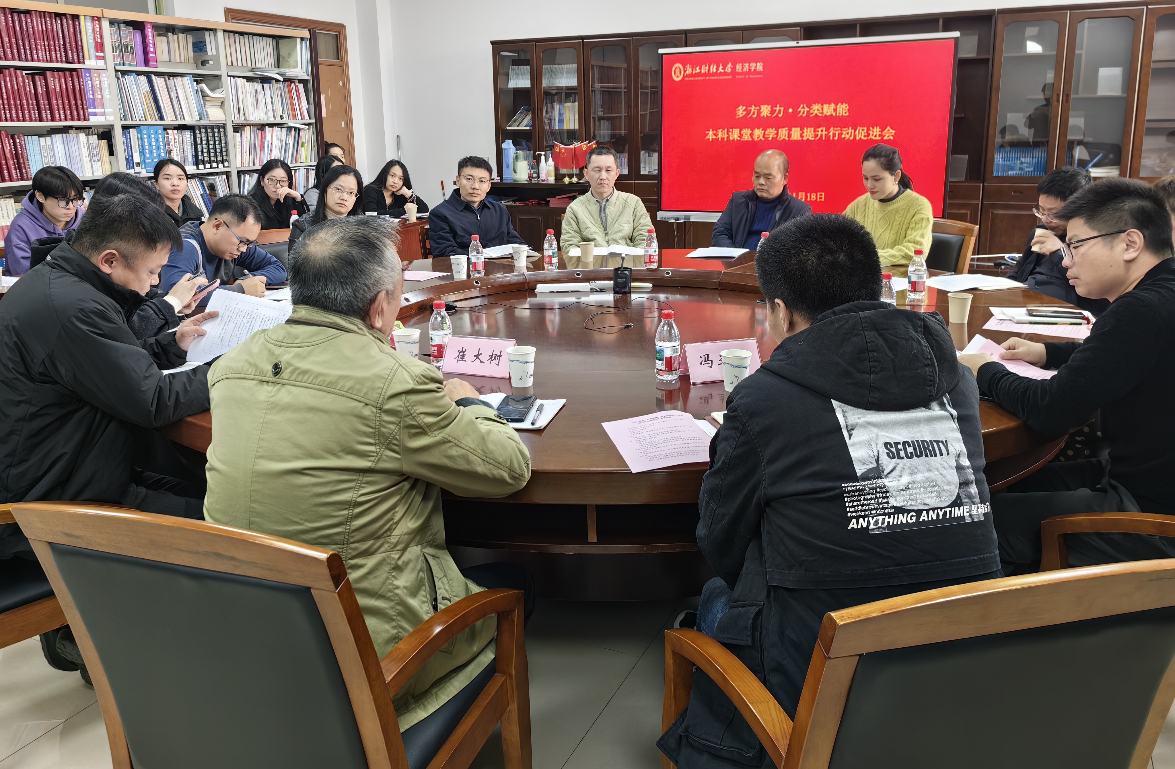 为深入贯彻落实学校“三风建设”要求,切实提升本科课堂教学质量,经济学院于2025年11月18日下午在6-304会议室召开“多方聚力·分类赋能”本科课堂教学质量提升行动促进会。会议由学院邓晓军副院长主持,特邀教务处李毅副处长、校本科教学督导委员会崔大树主任、教师教学发展中心王佳佳与冯李哲老师莅临指导,学院领导、教学督导组成员及教师代表共同参会,旨在凝聚校院两级力量,共同破解教学难题,部署全面提升行动。