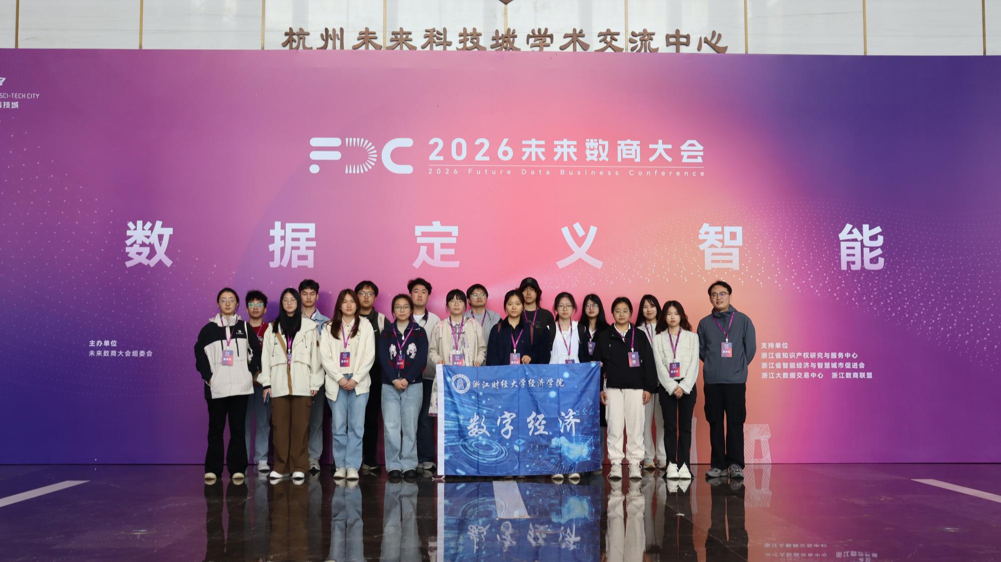 为深化数据要素领域研究探索,拓宽数字经济专业师生的学术视野与行业认知,强化产学研协同创新育人实效,2026年4月2日,我院组织数字经济协会师生代表走出校园,赴杭州未来科技城学术交流中心参加2026未来数商大会。本次大会以“激活数据要素,释放价值红利”为核心主题,聚焦数据要素市场化配置改革、公共数据治理等行业关键议题,汇聚政产学研各界专家大咖共话发展,为师生们搭建了一座连接课堂理论与行业实践的优质桥梁。