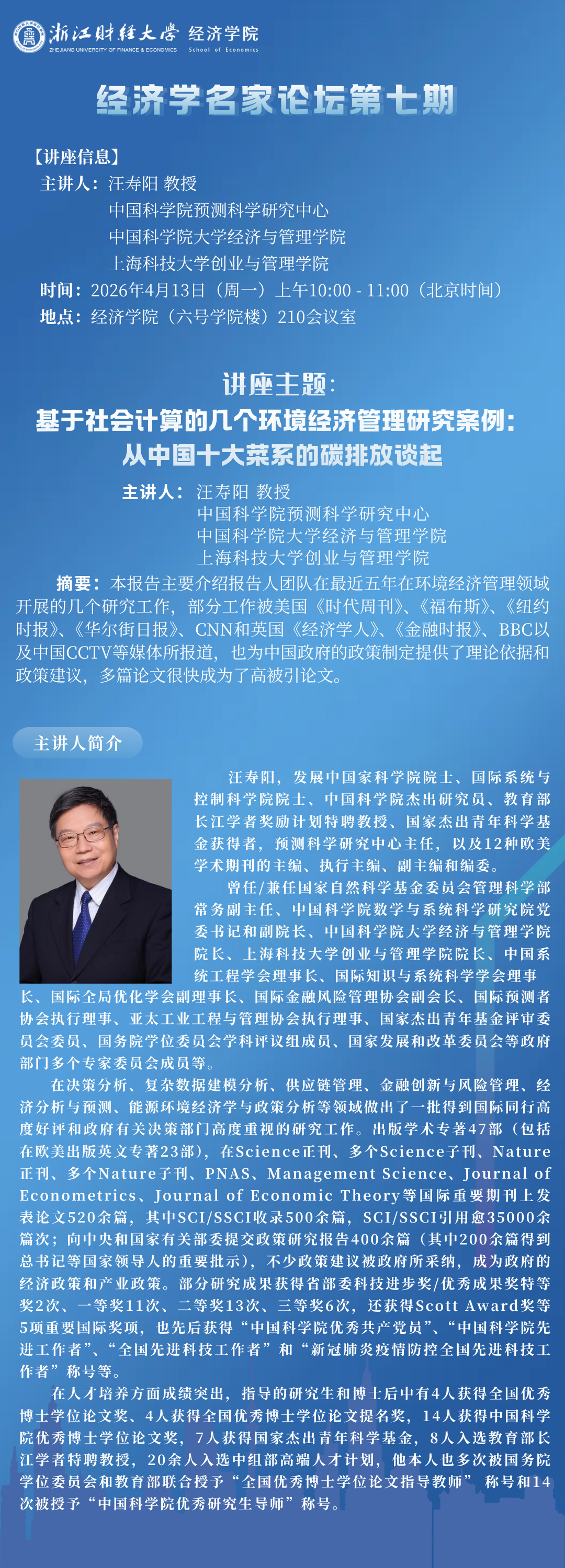 经济学名家论坛第七期——基于社会计算的几个环境经济管理研究案例:从中国十大菜系的碳排放谈起