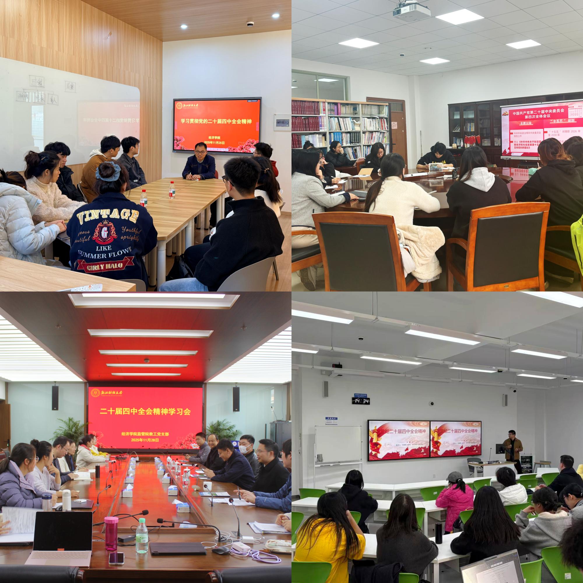 自党的二十届四中全会召开以来,经济学院党委深刻把握全会精神核心要义,将学习宣传贯彻工作作为当前首要政治任务,紧密结合学科特色与学院发展实际,构建“党委领学、支部研学、宣讲导学、实践践学”四维体系,推动全会精神在全院上下入脑入心、落地生根,为科学谋划“十五五”发展、服务中国式现代化注入强劲思想动力与行动动能。
